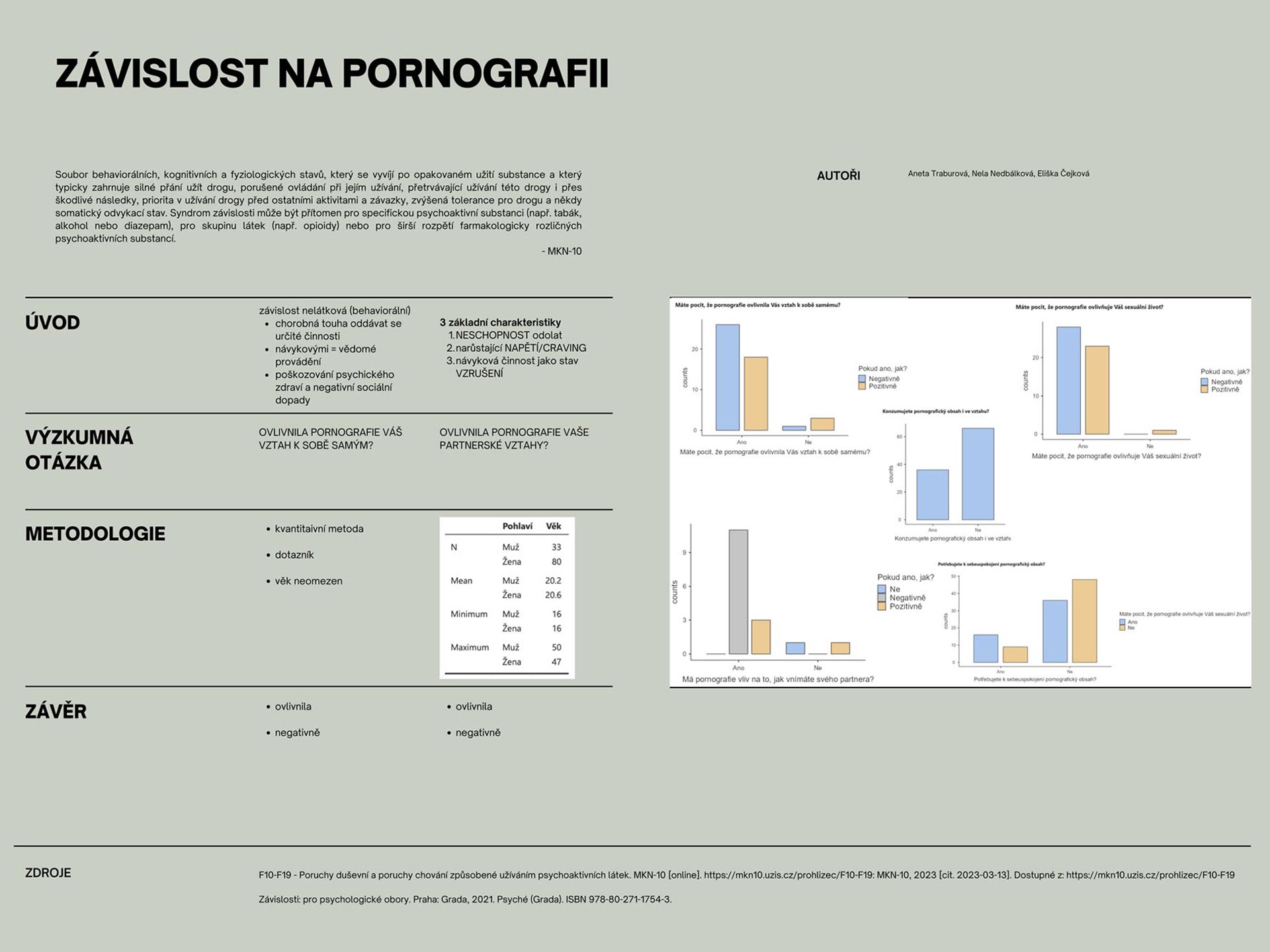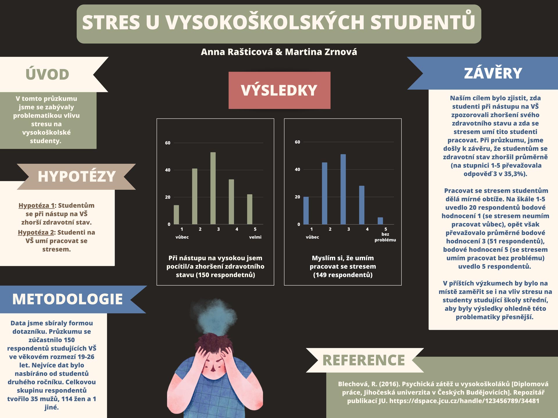 „Jsem ráda, že jsem si mohla vyzkoušet tvorbu posteru a projít si celým procesem výzkumu, od vytváření dotazníku, přes sběr dat až k prezentování posteru. Také jsem ráda, že jsem si mohla poslechnou výsledek dalších skupinek a přijít tak k novým poznatkům.“